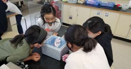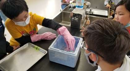 教室より広い理科室ですが,しっかりときまりを守って取り組めていました。