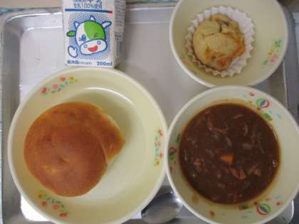 ミルクパン・牛乳・ビーンズシチュー・コーンブレッド