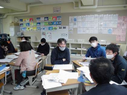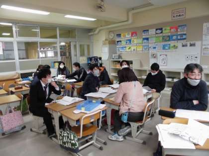 研究授業の後,校内の先生たちが集まって熱心に授業について討議会が行われました。