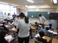 6年生が階段通る階段も隅から隅まで掃除をすると,思った以上にほこりがたまっていたりしました。手洗い場も,ピカピカになるまで磨いてくれました。
