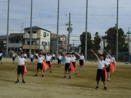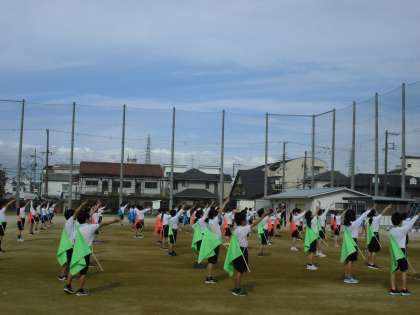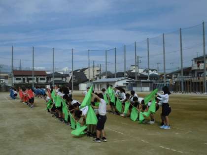 クラスごとに色の違うカラーの旗をもっての練習になりました。本当にきれいです。かっこよく振ると,ビシッ,パシッっと旗の音まで揃います。本番が楽しみです。うんとほめてあげてください。