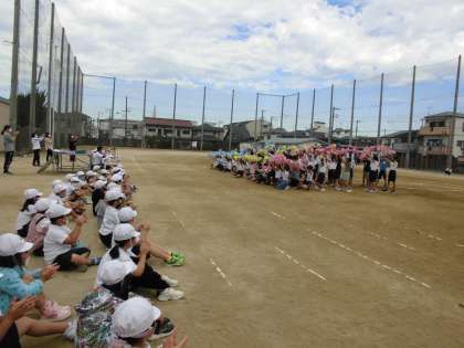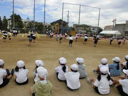 続いて,今度は1年生が2年生の演技をみます。最後にお互いの演技に耐性手,空いて学年の先生からコメントをもらって,明日への意欲がますますわいてきました。明日,最高の演技をお家の人に見てもらいましょうね。