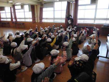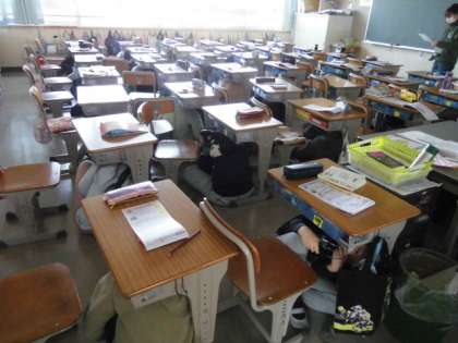 児童は地震発生の放送とともに迅速に避難態勢をとることができ,また,次の指示を聞き逃さないように静かに待機することができました。