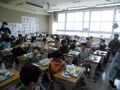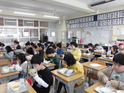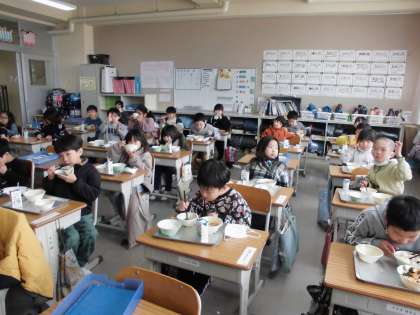静かに黙食を続けています。ちゃんとルールを守って食べている子どもたちの様子に感心します。これからも続けていきましょう。