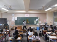 自分用の植木鉢に土と朝顔の種を入れてもらいました。