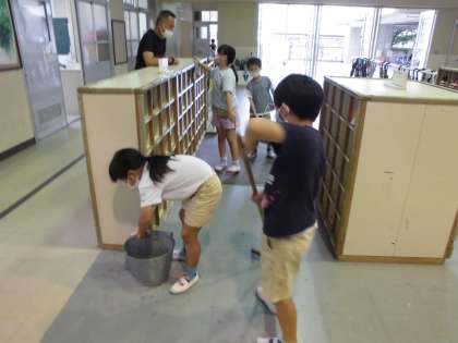 くつばこ周辺をきれいにしてくれていた子どもたちです。