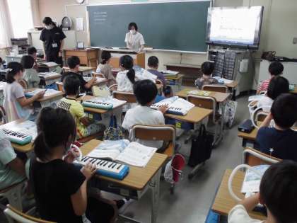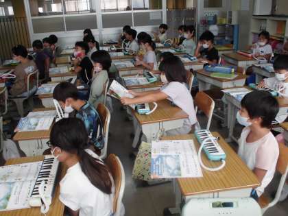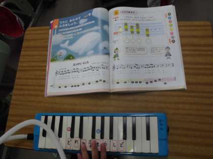 歌と鍵盤ハーモニカに分かれて「ぷっかり くじら」を合奏しました。