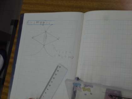 コンパス,ものさしを使い,ひし形を書く方法を学習しました。