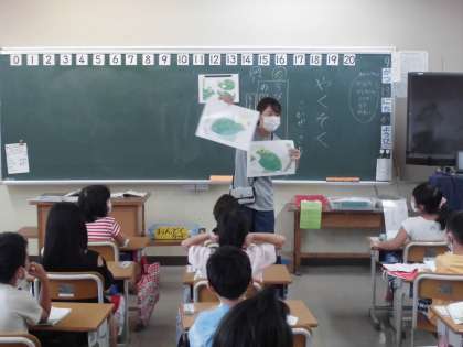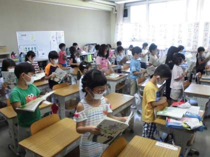 「やくそく」を音読しています。 場面の様子を想像しながら読んでいました。