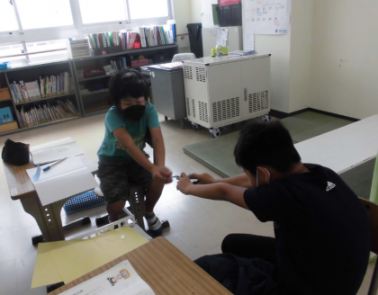 『すてきなところをつたえよう』では,付箋に互いのすてきなところを書き,交換しました。「いつも優しくしてくれてありがとう。」,「ボールをかしてくれたね。」,「算数ができてすごいね。」,「漢字を教えてくれてありがとう。」,「これからもよろしくね。」等,温かい言葉がたくさん!交換する時には照れていましたが,とても嬉しそうでした。