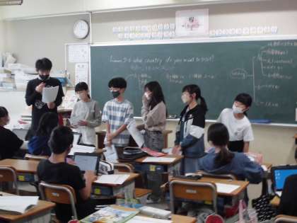自分が調べた行ってみたい国のことをミニスピーチで発表しました。