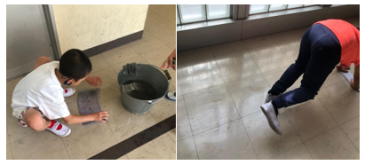 自分の担当場所を,一生懸命掃除しています。
