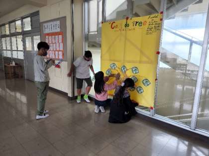 5年 外国語 公開日 2022/10/19 更新日 2022/10/19 5年 授業の中で考えた「I can 〜.」を学年みんなでtreeにし,廊下に掲示しました。 みんなができることを集めた Can do tree です。