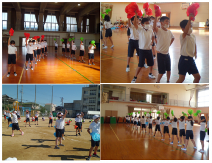 今日はクラスごとに演技を見せ合いしました。誰のどんな動きがよかったか発表し,拍手で称えていました。友だちのいいところを取り入れて,さらに素敵な演技をめざしましょう!