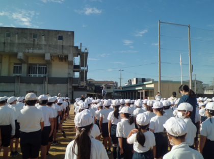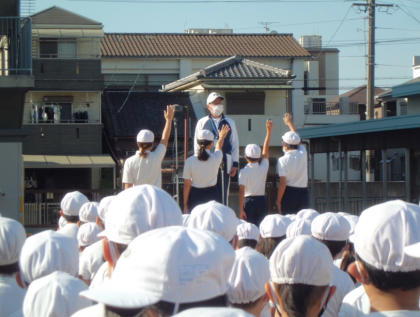 6年生は皆の手本となり,しっかりと揃っていました。児童誓いの言葉,運動場に響き渡り,とても格好よかったです。皆がしっかりと練習に取り組めたので,予定時刻よりも早めに終わることができました。