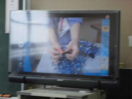 ダンスの練習のあとで,手に巻くきらきらをつくっていました。