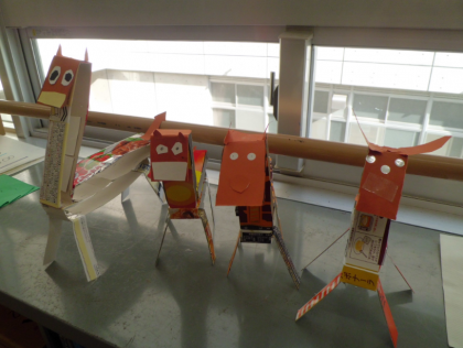 『馬のおもちゃの作り方』の学習です。「まず」,「つぎに」,「それから」,「さいごに」という言葉に着目しながら作りました。「何センチメートルか書いてあって分かりやすいね。」,「写真があるからできたよ。」等,作り方のいいところを見つけました。