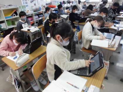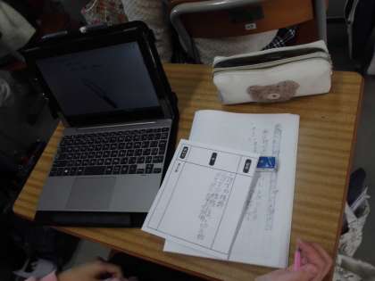 堺の伝統産業について調べ,ワークシートにまとめるところです。