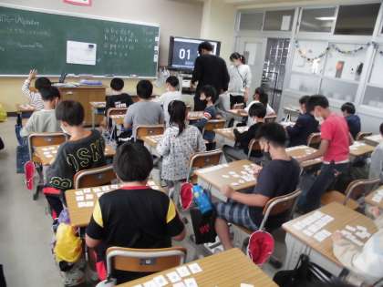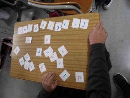 アルファベットのカードをできるだけ早く並べるゲームでした。