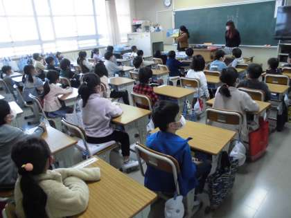 PTA実行委員さんによる絵本の読み聞かせ活動が再開し,1年1組が読んでもらいました。
