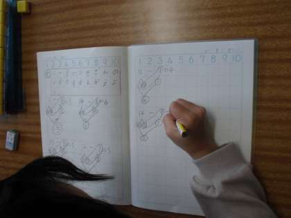 サクランボの方法ができるように,練習問題をノートに書いています。