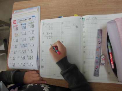小数のひき算の練習でした。 さしを使ってていねいに書いています。