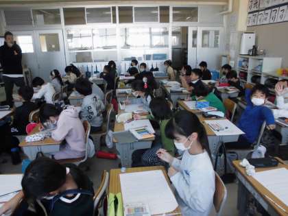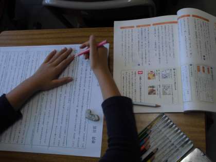 「すがたをかえる大豆」の内容から,はじめ,中,終わりに分けてプリントに書きました。