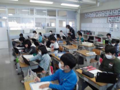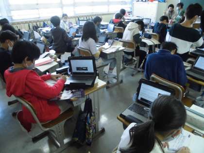 日本の伝統産業である堺の鉄砲鍛冶について調べ,プリントにまとめていました。