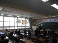 「まわりを見つめて」を読んで,身の回りの自然についてどのように感じるか話し合っていました。
