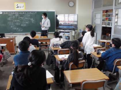 情報の学習で,気象に関する情報について,自分たちの経験や知っていることを発表し,まとめていました。