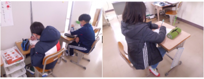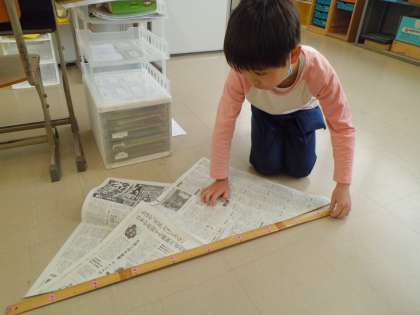 集中して学習しています。長さの学習では,新聞を対角線で折った長さが,約1mであることを確かめました。ものさしや巻き尺がない時は,代わりになる物を覚えておくと便利ですね。
