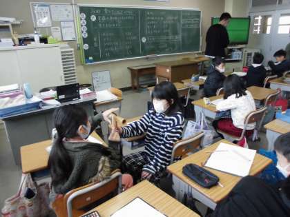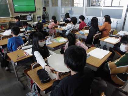 「音の性質」の学習で,音が鳴るときは,ものがふるえていることを学期を使って確かめていました。