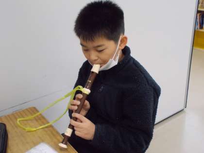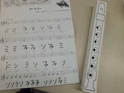 お家で音を気にせずに練習できるよう,紙のリコーダーで指遣いを練習している子もいます。