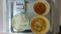 今日の献立は,牛乳・ごはん・せんば汁・小松菜とちくわのソテー・くるみ餅です