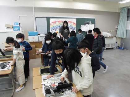 インクを擦って版画を印刷しています。