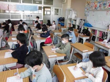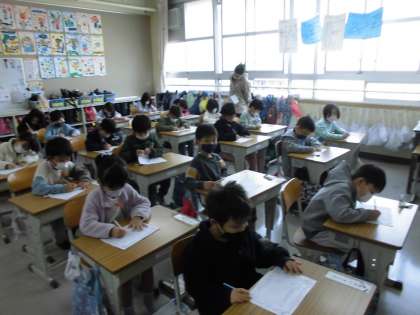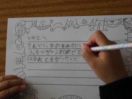 昨日、教室の床を磨いてくれた6年生にお礼の手紙を書いていました。