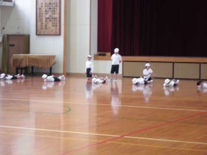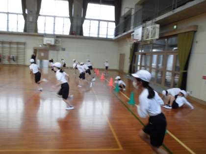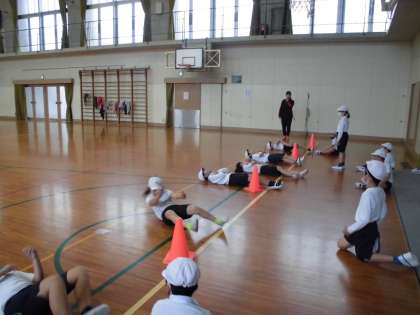 いろいろな姿勢から立ち上がり、素早くダッシュする練習をしました。