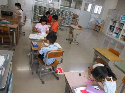 2年生は国語「お気に入りの本をしょうかいしよう」で、好きな本を決めてノートにどんなお話かを書いていきました。3年生は漢字の学習、4年生は算数の分度器を使って「角の大きさのはかり方」を学習しました。6年生は国語の聞き取りテストを学習しました。