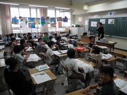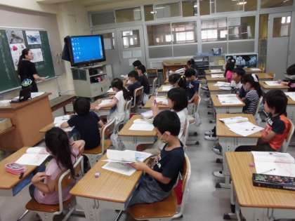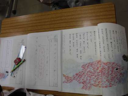 「スイミー」の場面ごとに、出来事やスイミーの様子を読み取っていました。