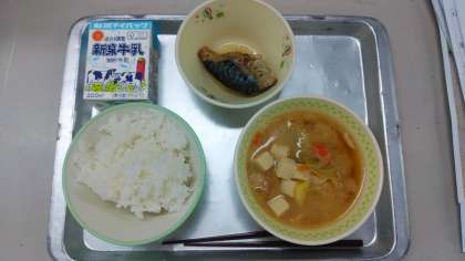 献立は,ごはん・牛乳・五目汁・さばの梅煮 でした。