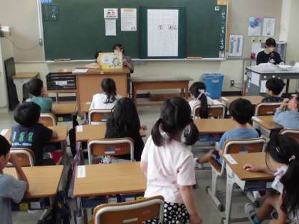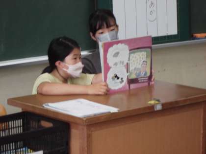 図書委員会の6年生が1年生の教室で絵本の読み聞かせをしてくれました。