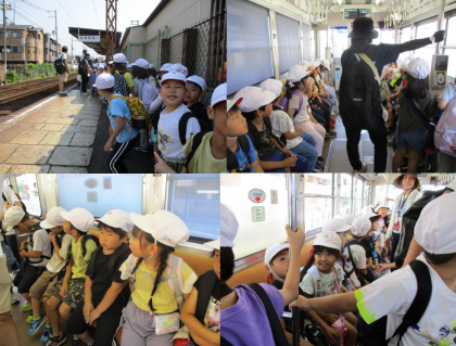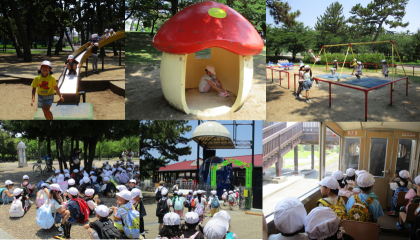 元気よく出発!電車に乗って浜寺公園に行きました。たくさんの遊具で遊びました。
