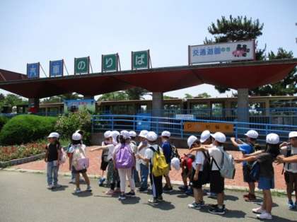 汽車に乗って,お弁当を食べて,午前中とは違う広場の遊具で遊びました。