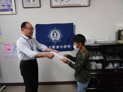 今日の全校朝会では校長先生からのお話と児童会からは募金のお礼と、最後に表彰がありました。