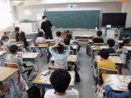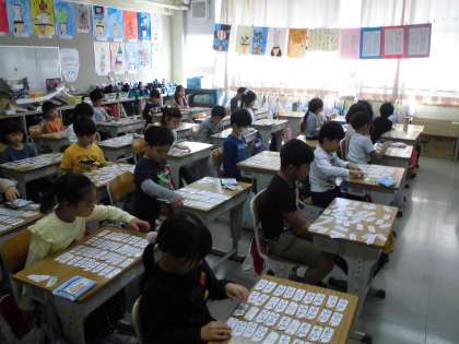 九九カードを並べて、計算クイズをしながら九九を確かめました。