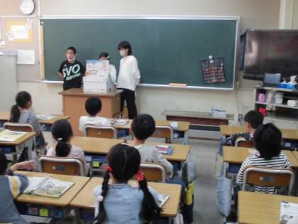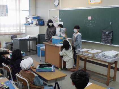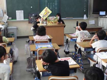 朝の時間に、5,6年生の図書委員が1,2年生の教室に絵本の読み聞かせに行きました。