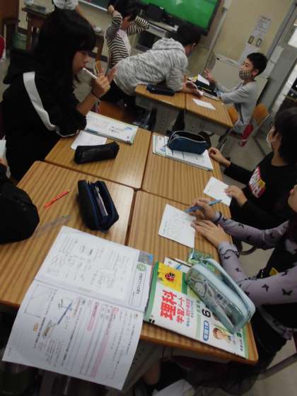 「大地のつくり」の勉強で、サンプルの石を手に取り、手触りや模様から何という石なのか考えました。