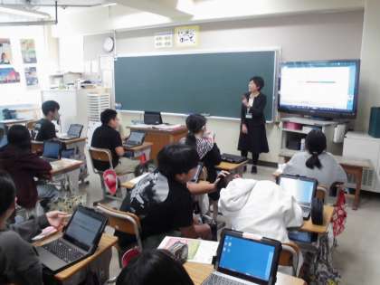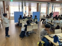 英彰小学校の栄養教諭の先生に来ていただいて、栄養バランスのとれた献立作りについて考えました。