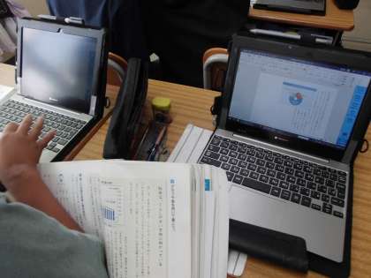 自分たちの暮らしの良くなっていることや課題を見つけ、グラフや資料をもとにまとめた意見文をワードで作成しました。