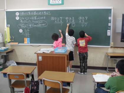 足し算のひっ算の練習です。 位を合わせることに気を付けて計算しました。